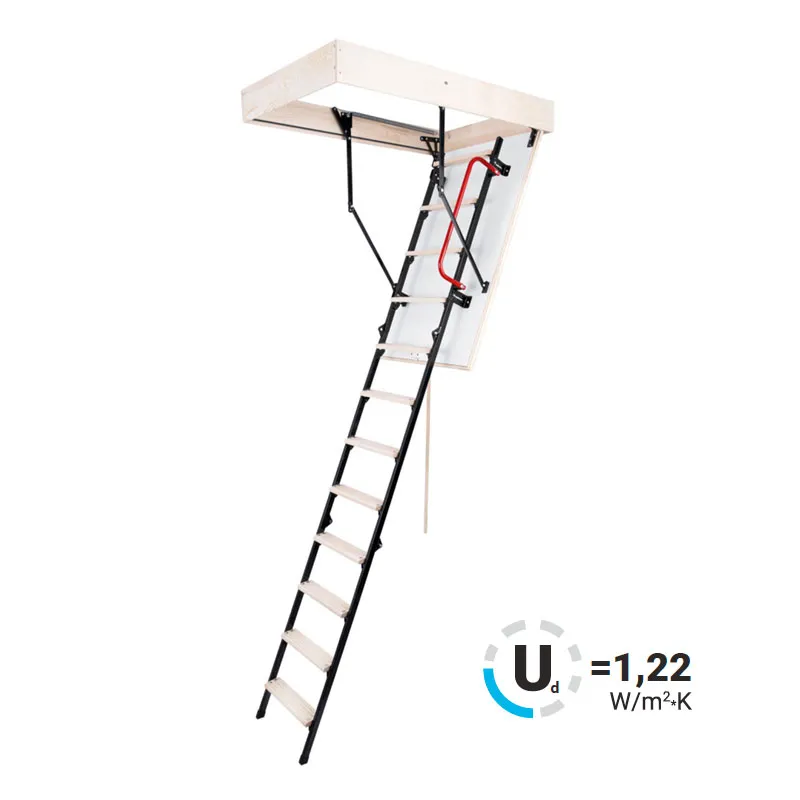 Чердачная металлическая лестница LMS – это надежная складная конструкция, состоящая из марша и термоизоляционной крышки, изготовленной из ДВП и окрашенной в бежевый цвет. Герметичность всей конструкции достигается благодаря утеплению крышки люка и контурному уплотнению по периметру, что предотвращает возможные теплопотери. Чердачную лестницу очень легко разложить и сложить благодаря наличию специального стержня с четырехугольной насадкой. Установленные в лестнице угловые петли-шарниры нового образца придают ей высокую прочность и надежность, а также предохраняют короб от возможной деформации. Основное преимущество чердачной складной металлической лестницы LMS сводится к ее небольшим габаритам при сохранении высокой функциональности, прочности, надежности и эстетичности конструкции. Монтировать лестницу очень просто, для этого не придется затрачивать много времени и сил. Применение лестничной конструкции этого типа позволяет существенно экономить пространство. Монтажный комплект LXK в комплекте не поставляется.