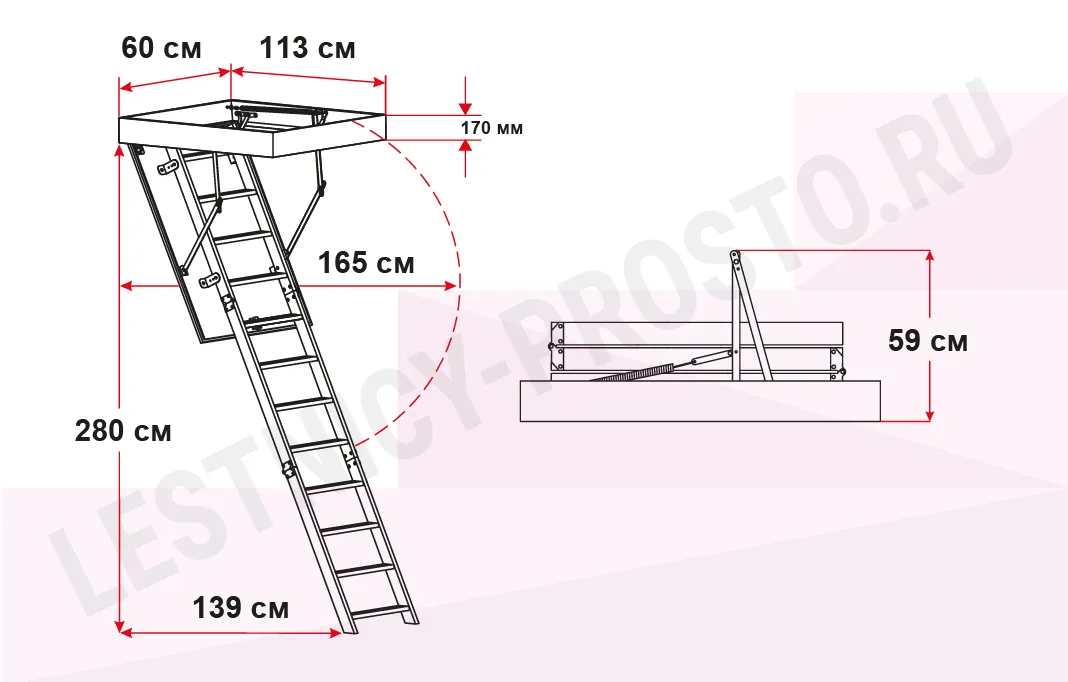 Чердачная лестница OMAN POLAR 60×113 см, h-280 см