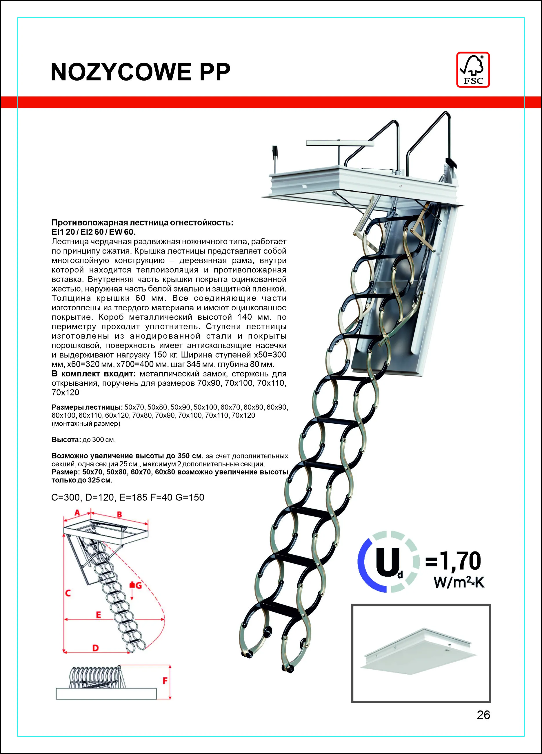 | Чердачная ножничная лестница MINKA ELEGANCE 70×90 см, h-300 см |