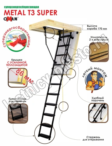 Чердачная складная лестница OMAN Metal T3 SUPER