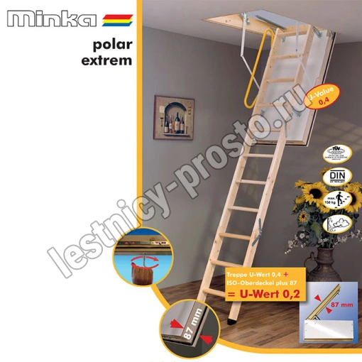 Чердачная складная лестница MINKA POLAR EXTREM 120×60 см, h-280 см