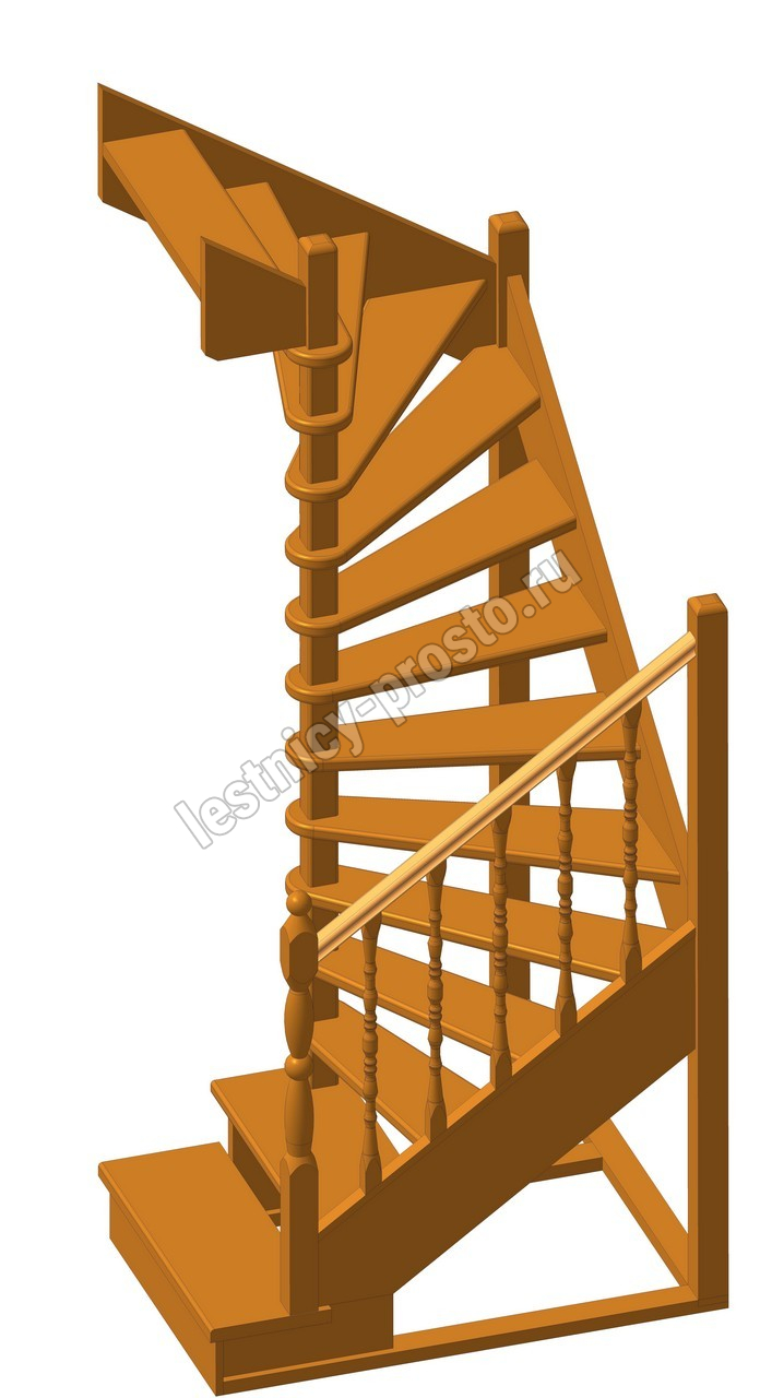 Деревянная межэтажная лестница ЛЕС-03 2720-2920 проем 1630-1120, Сосна