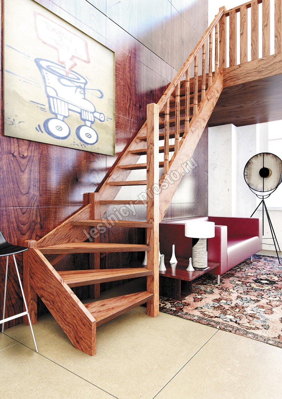Деревянная межэтажная лестница ЛЕС-07 2470-2675 проем 2360-830, Сосна