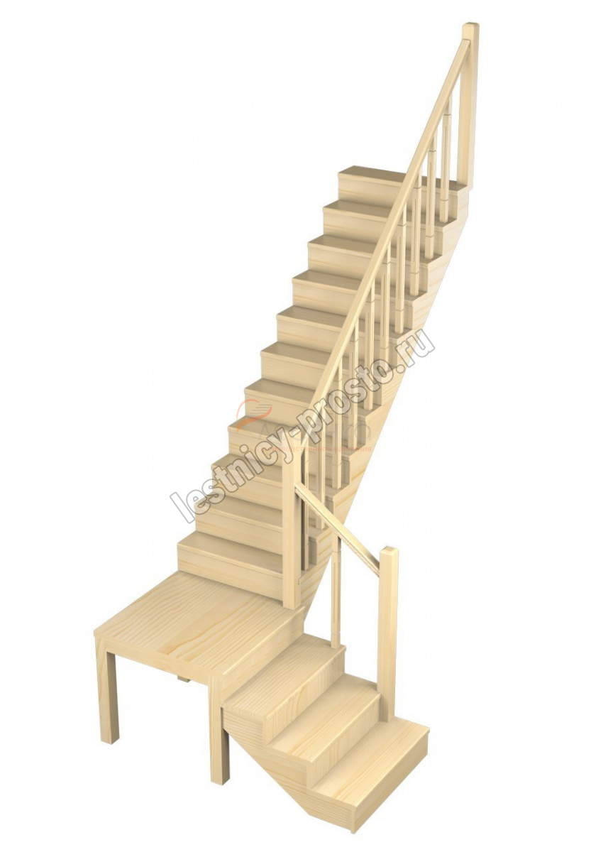 Универсальная лестница, имеющая в основе своей конструкции наклонную опорную балку. Легко впишется в любой интерьер, даже на неровном полу. Место под площадкой можно закрыть и использовать для хранения различных предметов. Монтаж осуществляется силами двух человек на объекте по указаниям, приведенным в паспорте на лестницу.