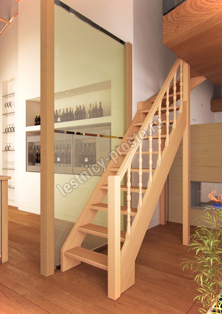 Деревянная межэтажная лестница Лес-715, Сосна