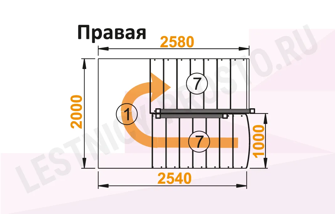 Схема лестницы К-104М с поворотом направо