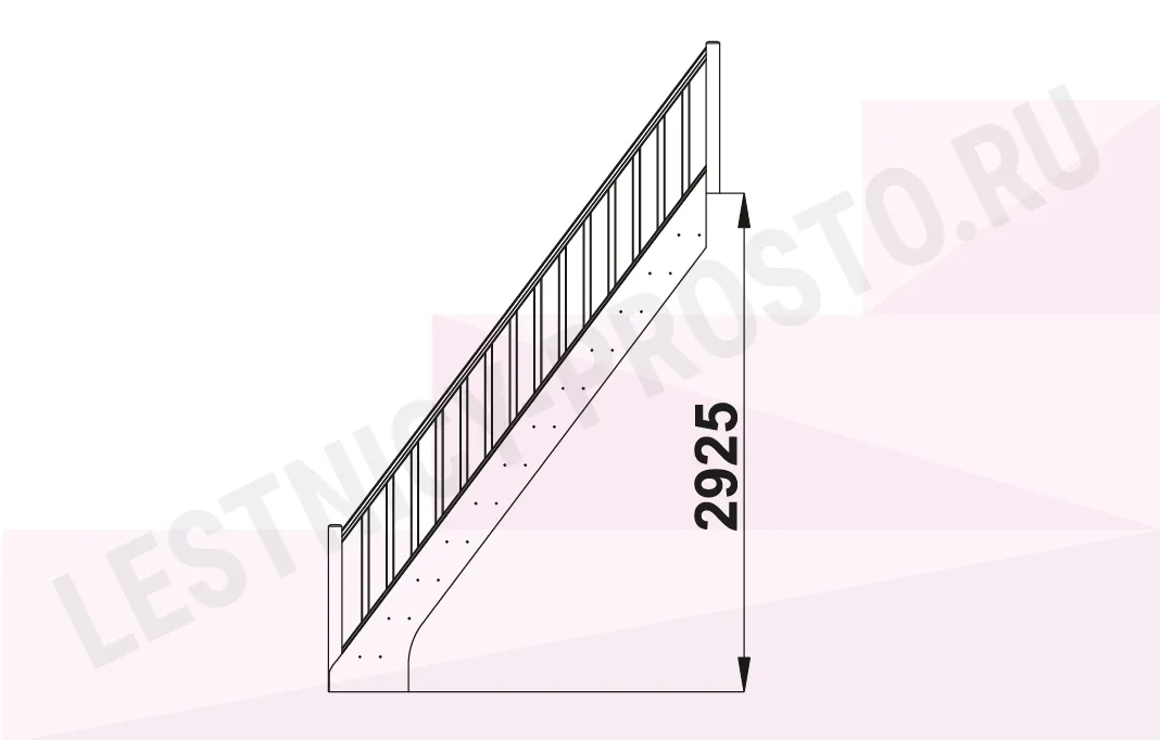 Базовый комплект включает в себя элементы лестницы и ограждения без какого-либо покрытия.