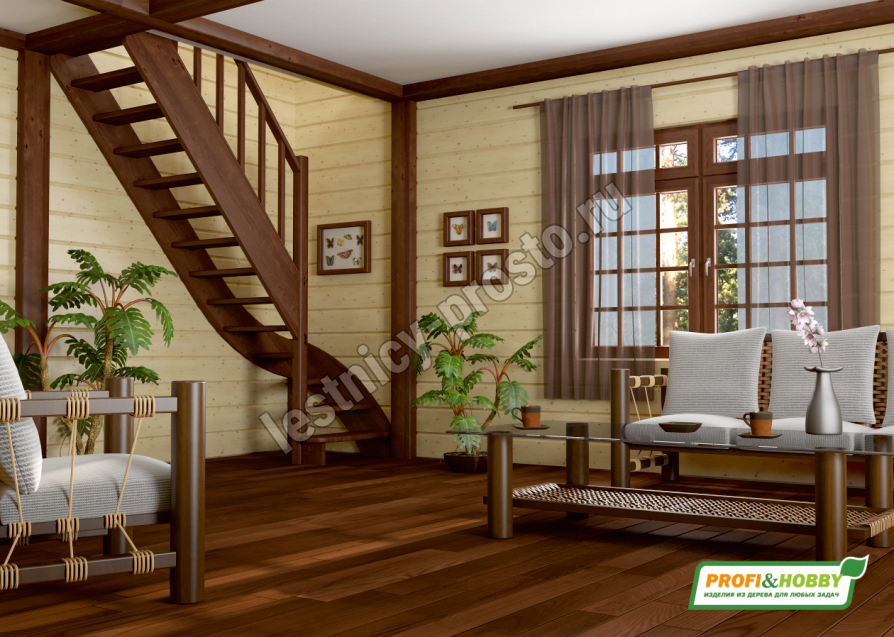 Ступени и поручень лестницы изготовлены из бука, остальные элементы из сосны.