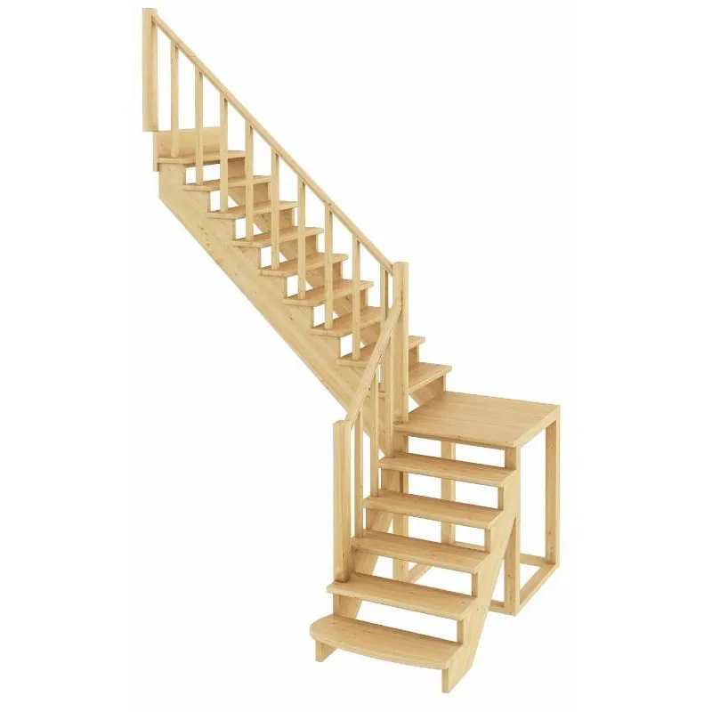 Базовый комплект включает в себя деревянные элементы лестницы и ограждения без какого-либо покрытия.