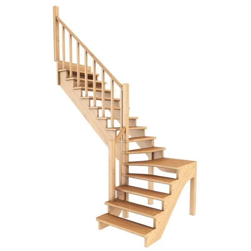 Базовый комплект включает в себя деревянные элементы лестницы и ограждения без какого-либо покрытия. Ограждение можно установить справа или слева.