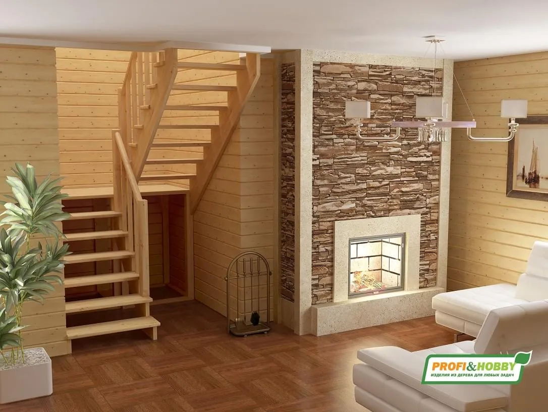 Уютная и благородная, благодаря ступеням из бука и аккуратному буковому поручню.