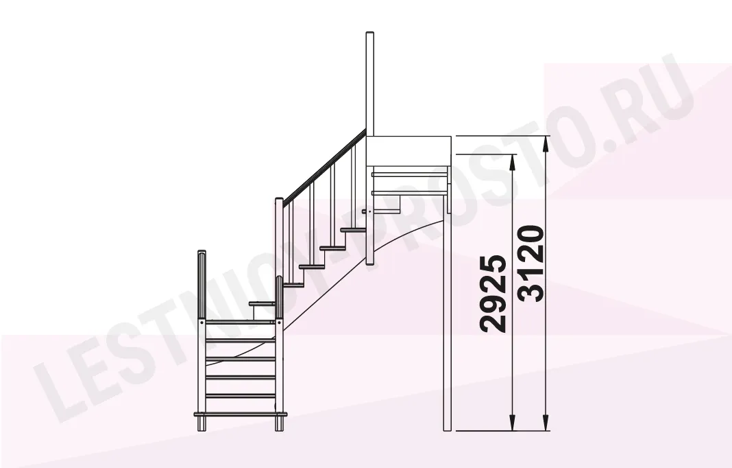 Лестница К-009М с поворотом налево