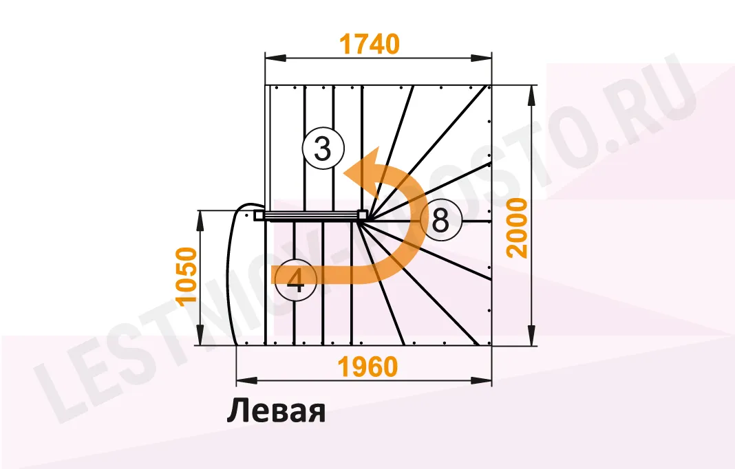 Лестница К-103М с поворотом налево