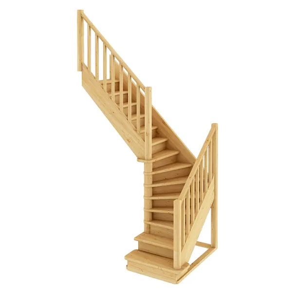 В производстве лестницы ЛС-225м под покраску используется сосна с небольшими изменениями цвета, что практически не влияет на ее механические свойства и почти незаметно при покраске в темные цвета. Базовый комплект включает в себя деревянные элементы лестницы и ограждения без какого-либо покрытия.