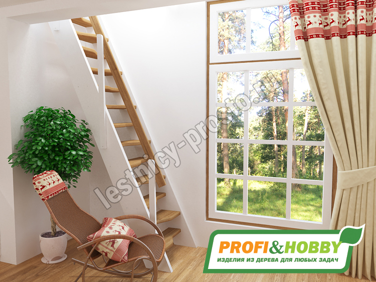 Ступени и поручень лестницы изготовлены из ясеня, остальные элементы из сосны.