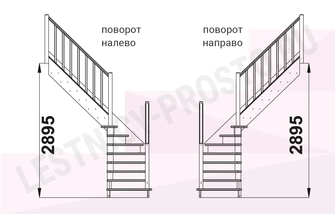 Базовый комплект включает в себя деревянные элементы лестницы с подступёнками и ограждение без какого-либо покрытия.