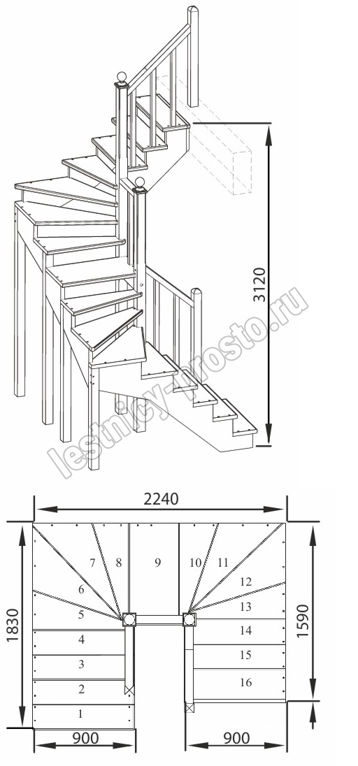 Высота лестницы 3120 мм