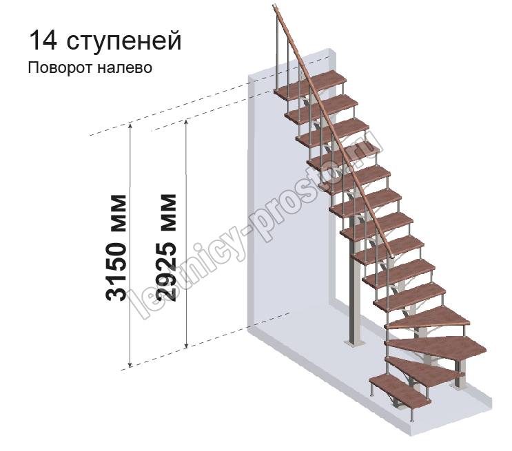 Комплект для Г-образной лестницы MONO h3137.5 из 14 ступеней.