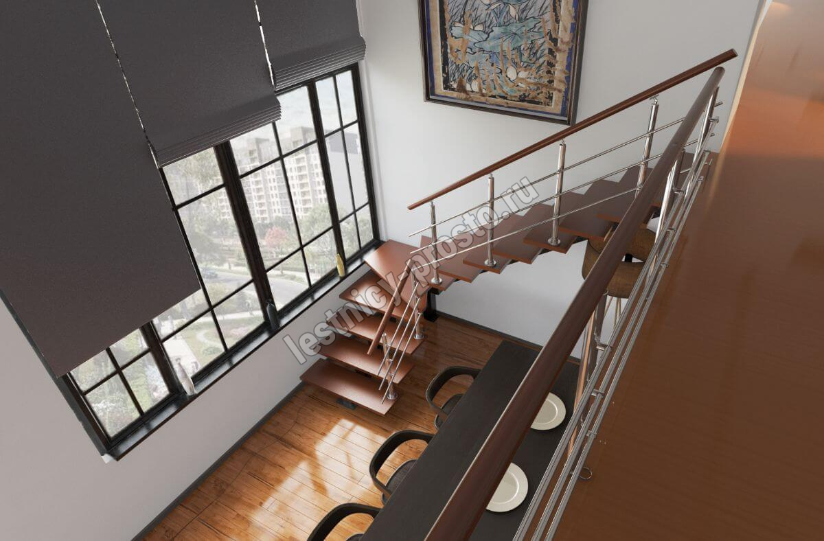 Комплект ограждений для Г-образной лестницы PROSTO MONO из 8 ступеней.