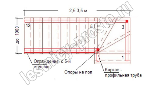 Ограждение начинается с пятой ступени.<br>