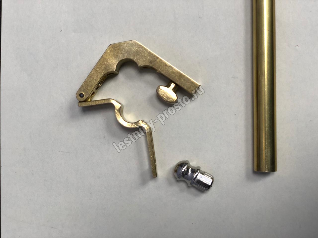 Ковродержатель комплектуется двумя держателями из латуни цвета золото, а также цельным прутком из латуни длиной от 251 до 300 см. Конструкция является сборно-разборной не требующей демонтажа креплений, что делает ее долговечной и очень удобной для чистки ковров и ковровых покрытий.