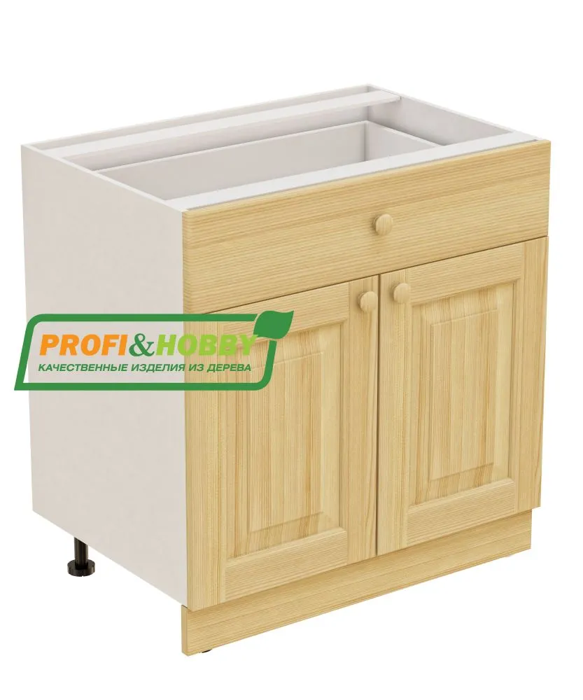 Тумба 2 двери 1 ящик 800х530х720 + фасад сосна бесцветный акриловый лак