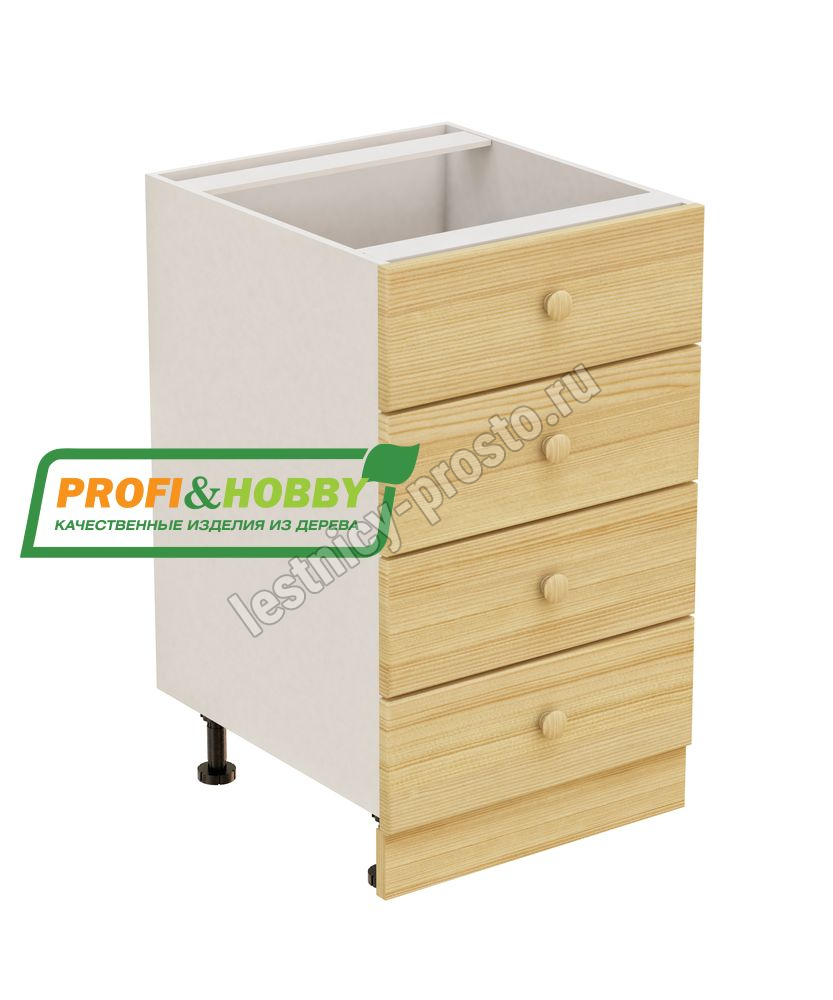 Тумба 4 ящика 500х530х720 + фасад сосна без покраски