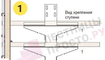 При заказе вы можете выбрать любой вид крепления ступеней из показанных ниже в блоке "Чертежи и схемы" (просто оформите заказ, мы позвоним вам для согласования заказа и спросим номер необходимого крепления) .