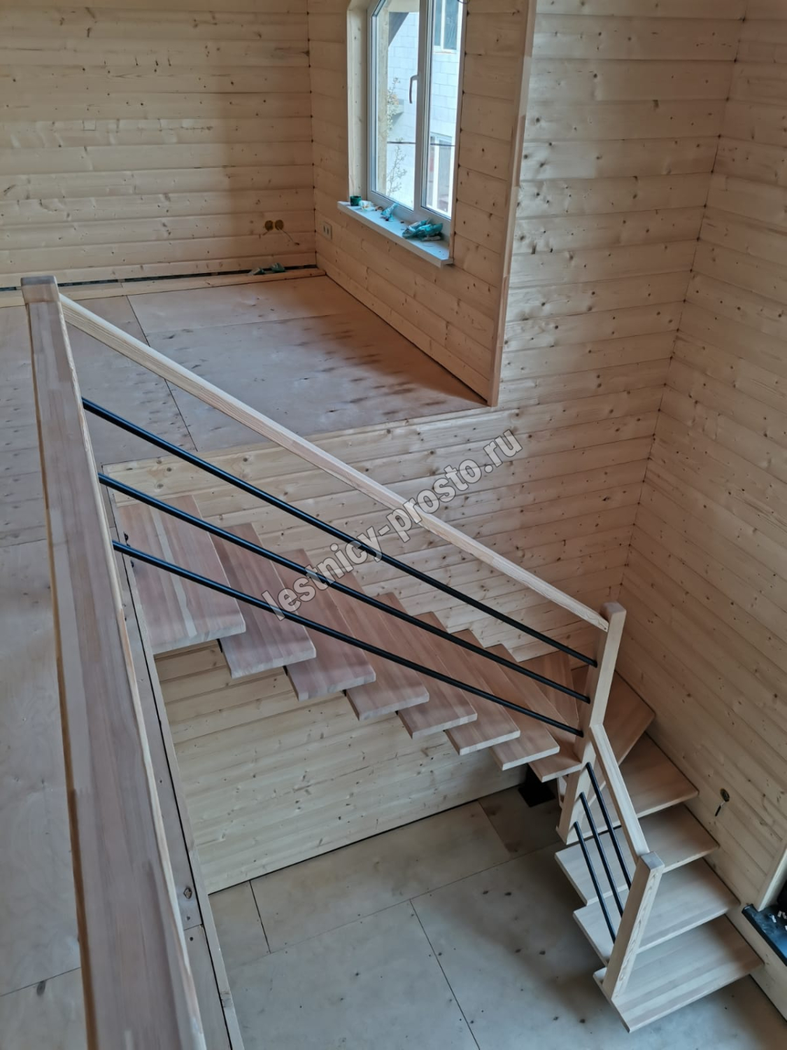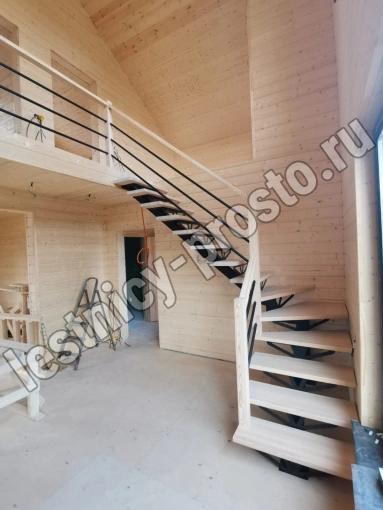 Конструкция представляет собой стальной монокосоур, на который крепятся ступени из выбранной породы дерева.