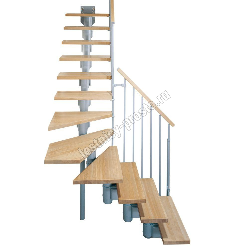 Красивая комфортная лестница с уникальной модульной конструкцией, которая позволяет собрать большое число модификаций, подходящих под ваш проём и другие условия помещения. Возможные варианты сборки лестницы смотрите в блоке "чертежи и схемы". При монтаже модульной лестницы KOMPACT, вы можете варьировать высоту шага и проступь, получив точную необходимую высоту и габариты. Лестница KOMPACT возможна в двух вариантах: с шириной марша 740 мм и 890 мм. Ступени выполнены из массива бука и покрыты качественным износостойким лаком. Базовая комплектация позволяет получить лестницу под высоты этажа в диапазоне 2250 - 3030 мм, кроме того, установив дополнительный комплект увеличения высоты, можно поднять высоту лестницы до 3730 мм. Каркас и стойки ограждения выполнены из пластифицированного металла.