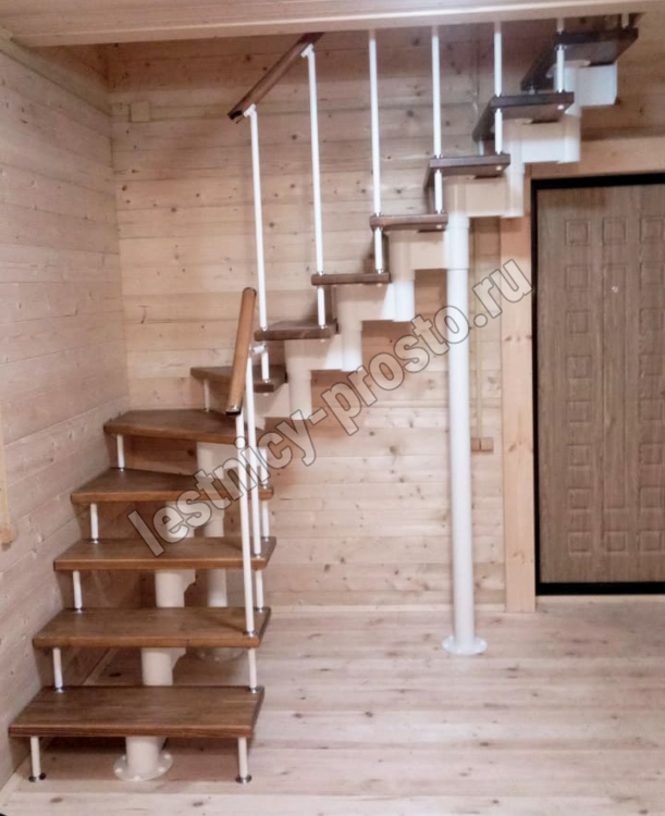 Каркас лестницы представляет собой набор модулей, которые комплектуются уже готовыми к монтажу.
