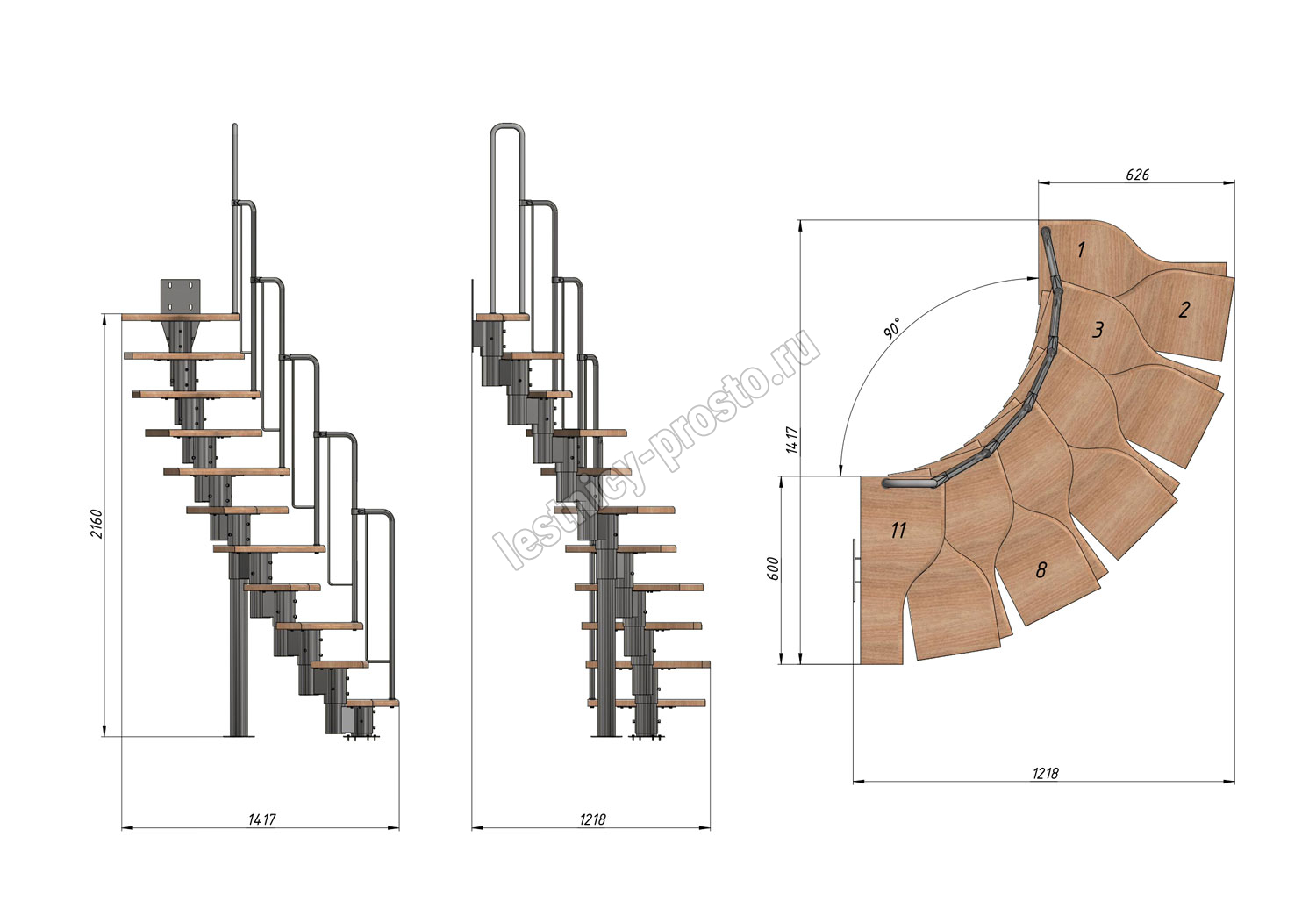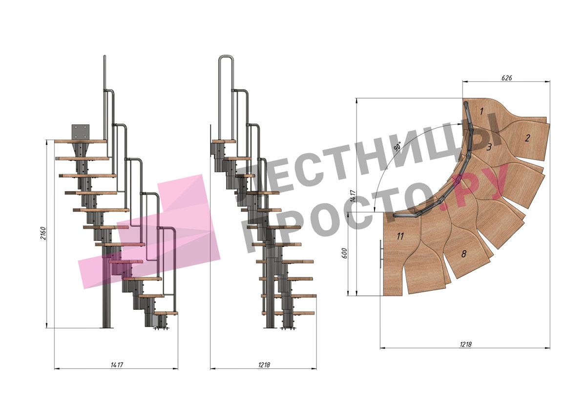 Лестница Prosto Urban Black гусиный шаг 600 мм, h198-288 см (11 ступеней), бук