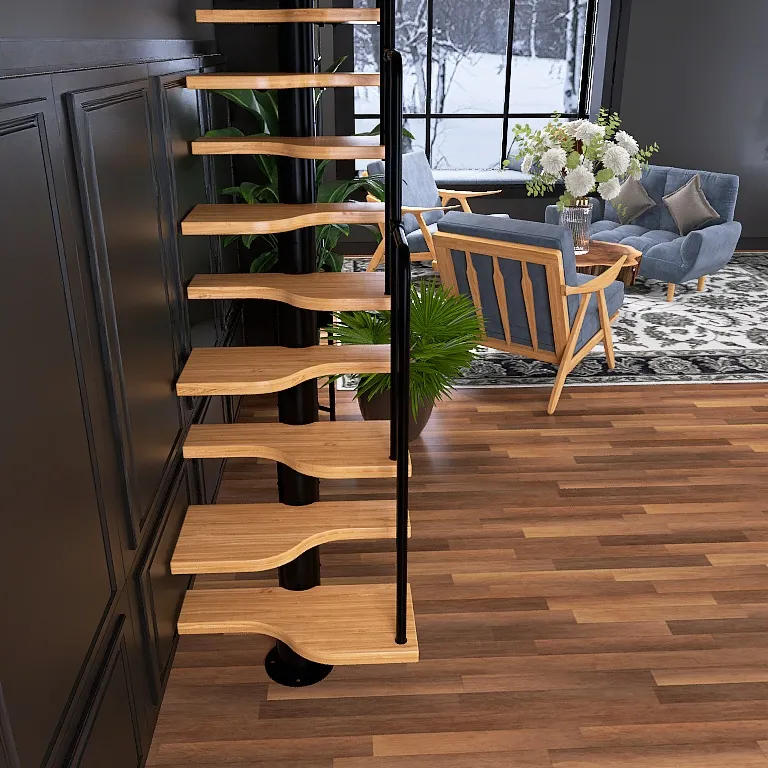 Лестница Prosto Urban Black гусиный шаг 600 мм, h216-312 см (12 ступеней), ясень