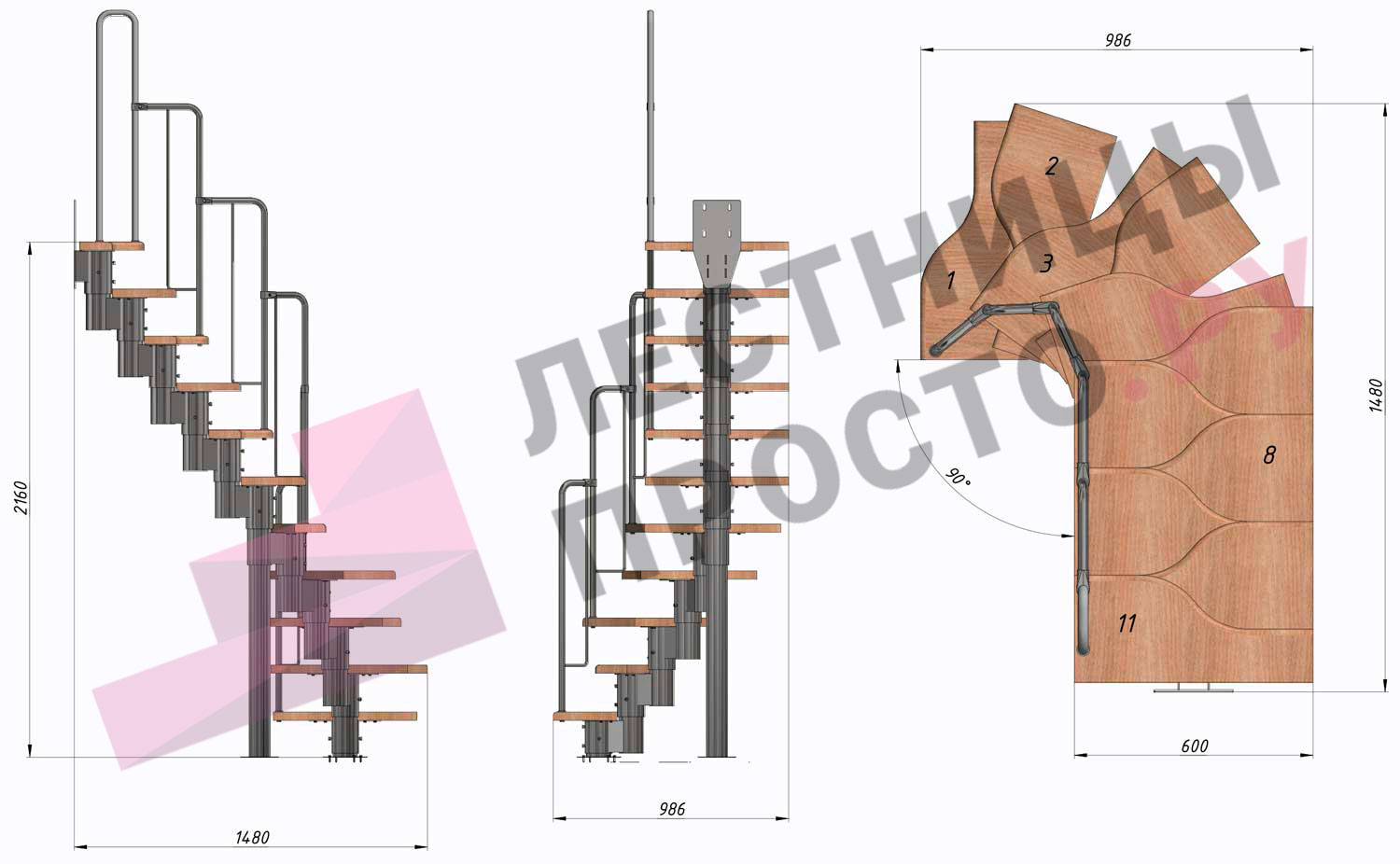 Высота лестницы 1980 - 2880 (11 ступеней) мм
