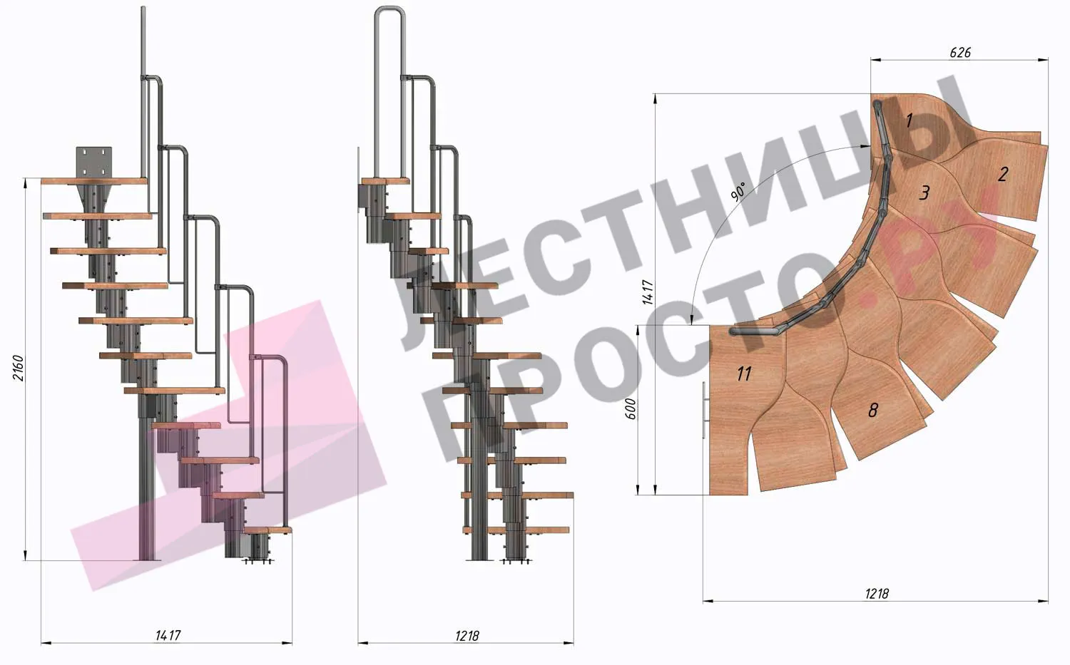 Лестница Prosto Urban Grey г-образная гусиный шаг 600 мм
