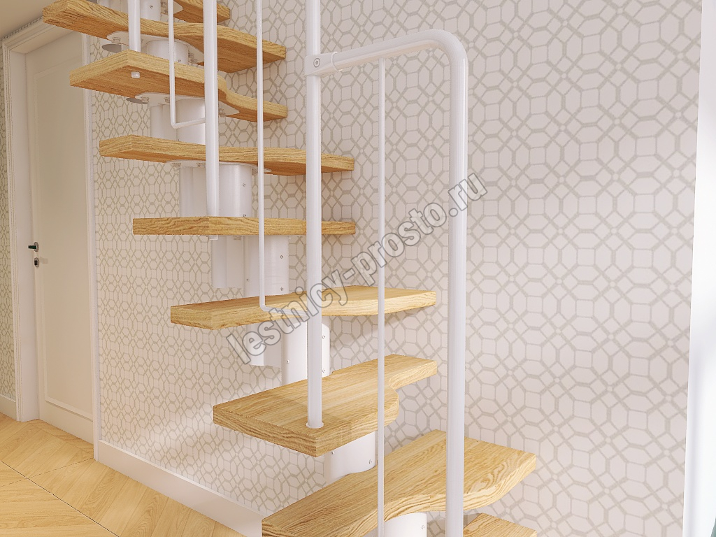 Лестница Prosto Urban White гусиный шаг 600 мм, h198-288 см (11 ступеней), берёза мультиплекс