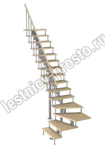 Модульная лестница Фаворит 180 2700-2850, Серый, Бук, Нержавеющая сталь