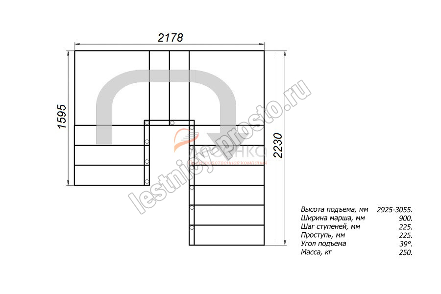 Модульная лестница Комфорт 225 2925-3055, Серый, Бук, Нержавеющая сталь