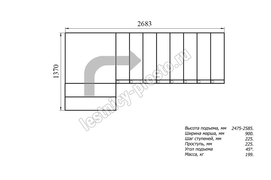 Высота лестницы 2475 - 2585 мм