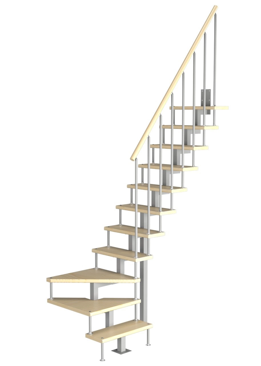 Модульная малогабаритная лестница Компакт 2475-2700, Белый, Сосна, Нержавеющая сталь