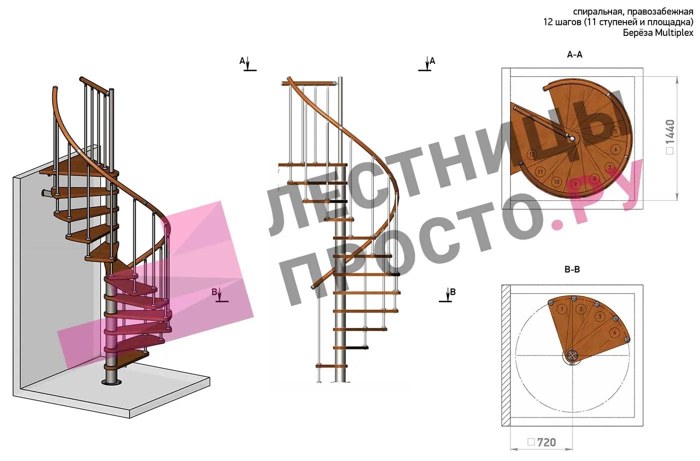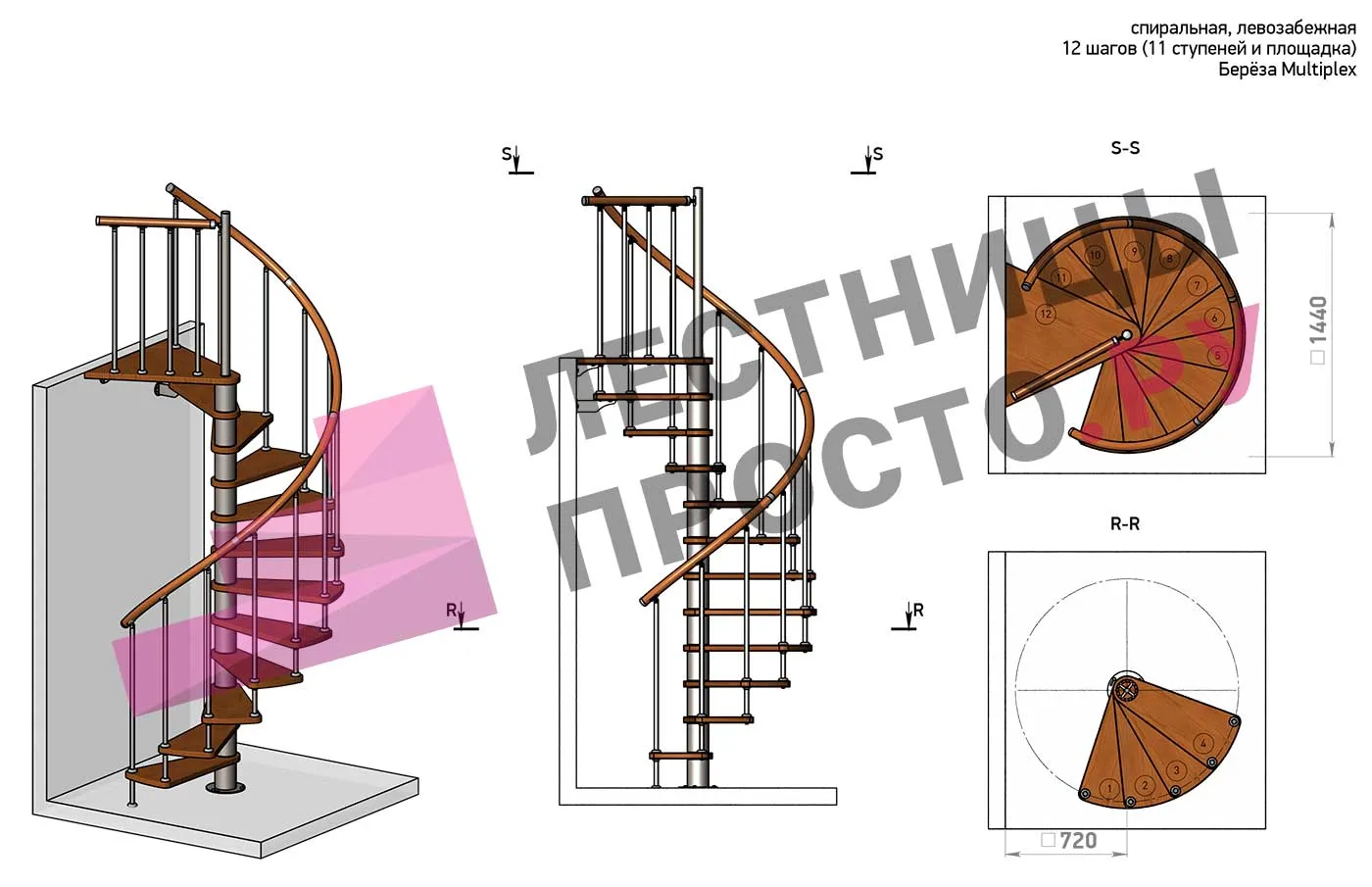 Решение об ориентации поворота лестницы принимается при сборке (комплект собирается и в правозабежную, и в левозабежную лестницу)