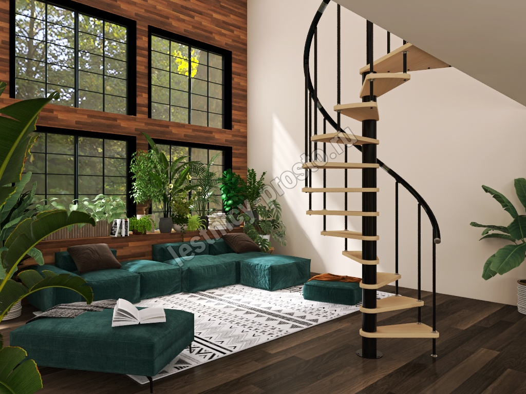 Винтовая лестница Prosto Spiral Black D160см, h325.7-369.8 см, бук
