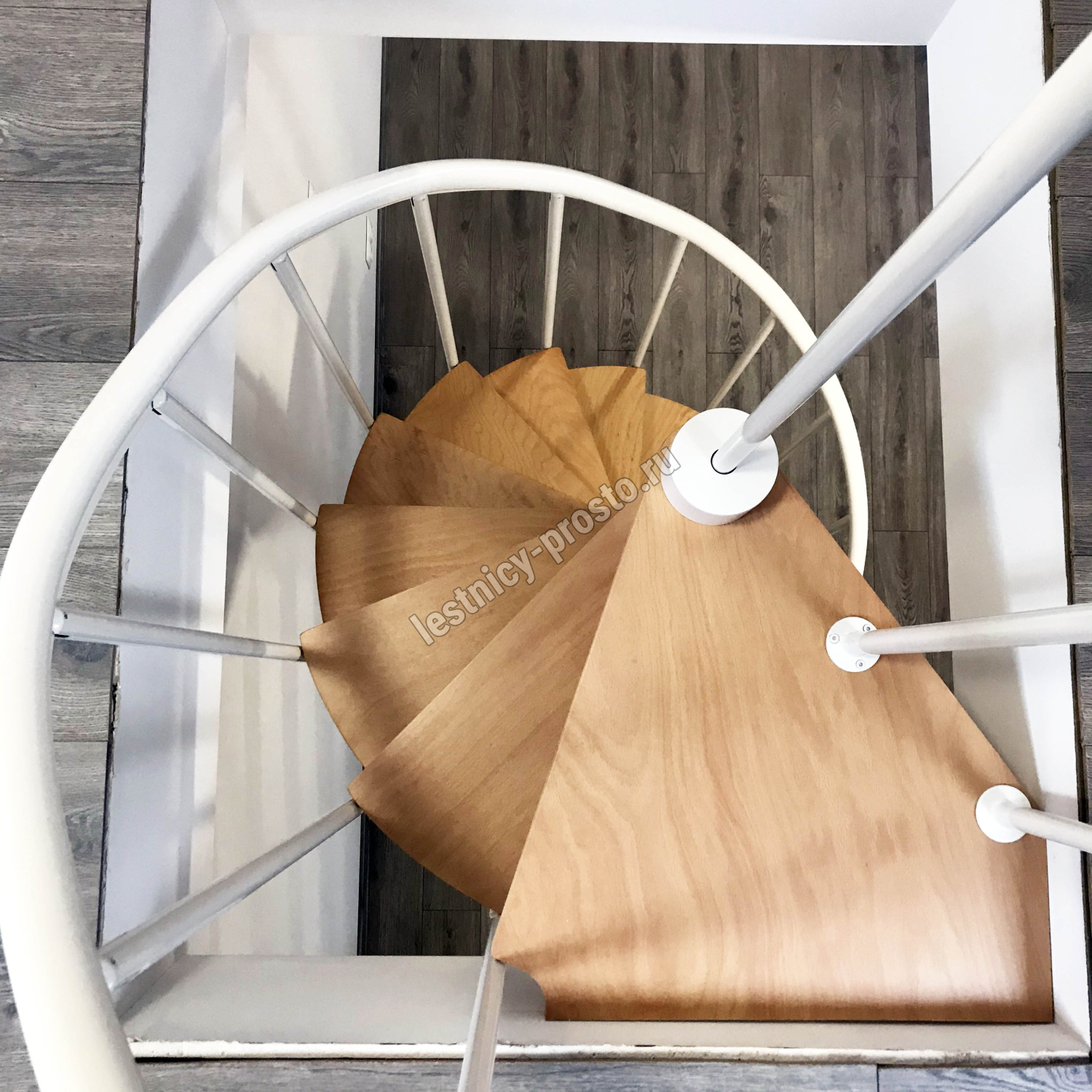 Лестница монтируется как по часовой стрелке, так и против. Возможен монтаж в круглый или квадратный проём.